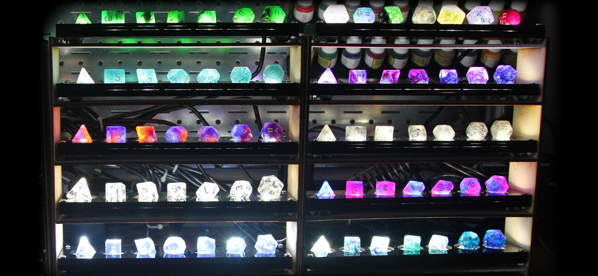 Weather you are a collector or a maker, Our dice displays will make your dice pop! For too long, passionate gamers have faced a dilemma: store their prized sets out of sight, or settle for basic display options that fail to capture their true beauty. Our LED-illuminated dice display solves this by combining premium craftsmanship with thoughtful design.