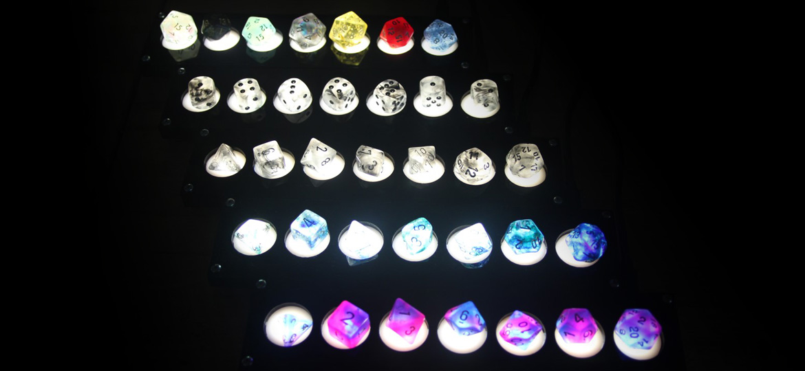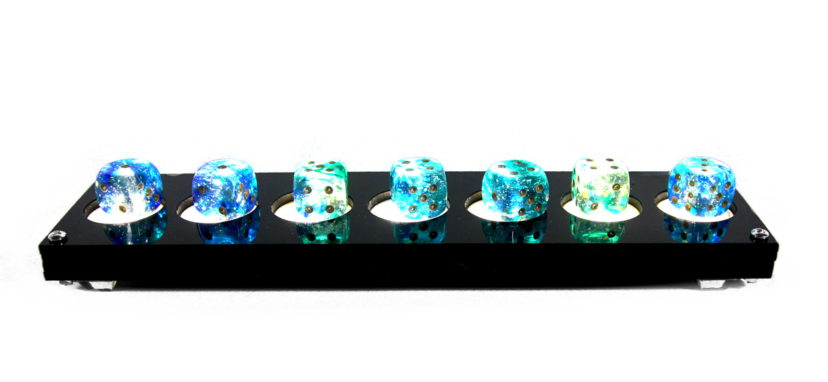 Custom-designed bottom-up LED illumination reveals the intricate beauty of your dice.