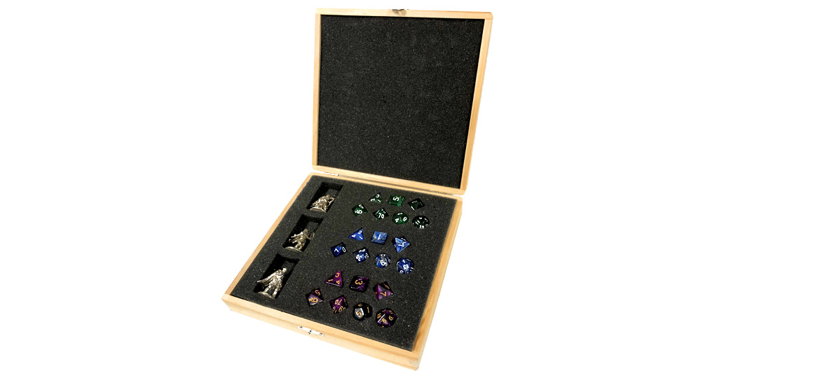 Our boxes can hold up to three sets of miniatures and dice, making them perfect for any table top game, such as Dungeons & Dragons and Pathfinder.